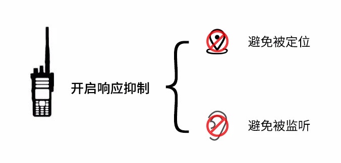 當(dāng)對講機用戶啟動響應(yīng)抑制功能后,對講機只允許用戶使用語音呼叫、CSBK呼叫和數(shù)據(jù)呼叫(用于短信、工作通知單和遙測等),而所有其他類型的傳輸,包括所有ACK,ARS、GPS等,包括第三方請求的傳輸,都會被阻止,從而避免相關(guān)語音或數(shù)據(jù)被第三方人員接收。