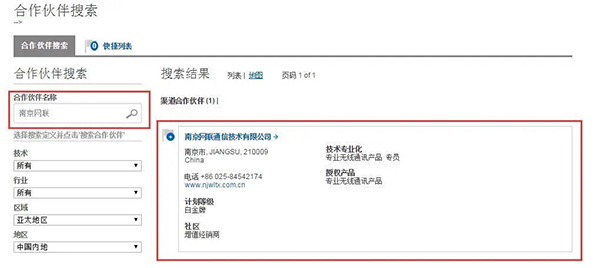 輸入合作伙伴名稱的關(guān)鍵字查詢,所有信息一目了然(我們這里以“南京網(wǎng)聯(lián)”為例)