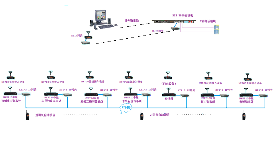 徐州市地方海事局無線數(shù)字聯(lián)網(wǎng)通信系統(tǒng)日前正式開通使用。本系統(tǒng)結(jié)合徐州地方海事局管理范圍點多面長的特點,采用先進的建伍數(shù)字IP聯(lián)網(wǎng)系統(tǒng)。既解決了各個點工作通信的需要,又滿足全線統(tǒng)一調(diào)度的工作需要。